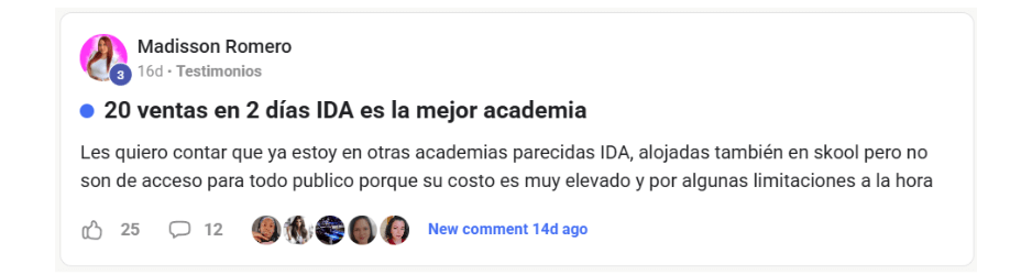 Dentro de Imperio Digital Academy no solo encontrarás un negocio listo para promocionar y generar ingresos tambien es una comunidad con más de 8,700 miembros activos. También tendrás acceso a clases semanales en nuestro calendario interno, donde podrás hacer preguntas, reforzar tus conocimientos y avanzar hacia tus metas.