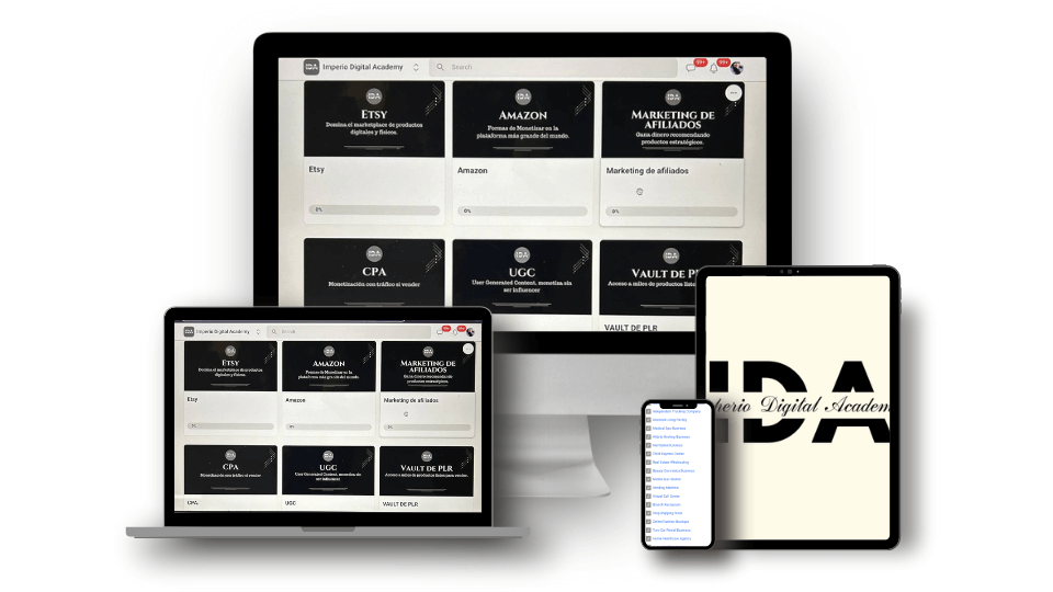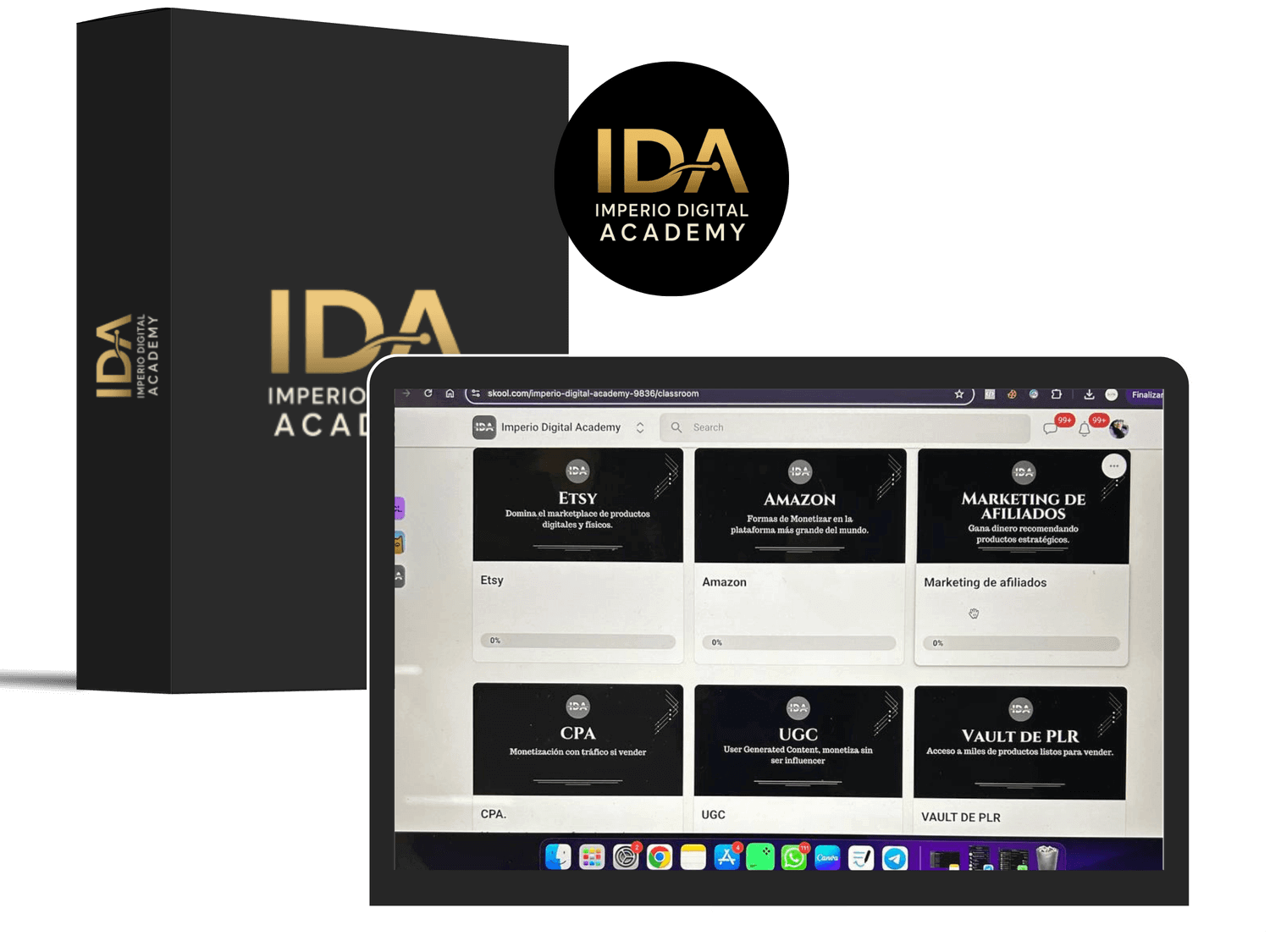 IDA incluye 39 módulos donde aprendés desde cero cómo emprender online, vender todos los días y crecer también a nivel personal.